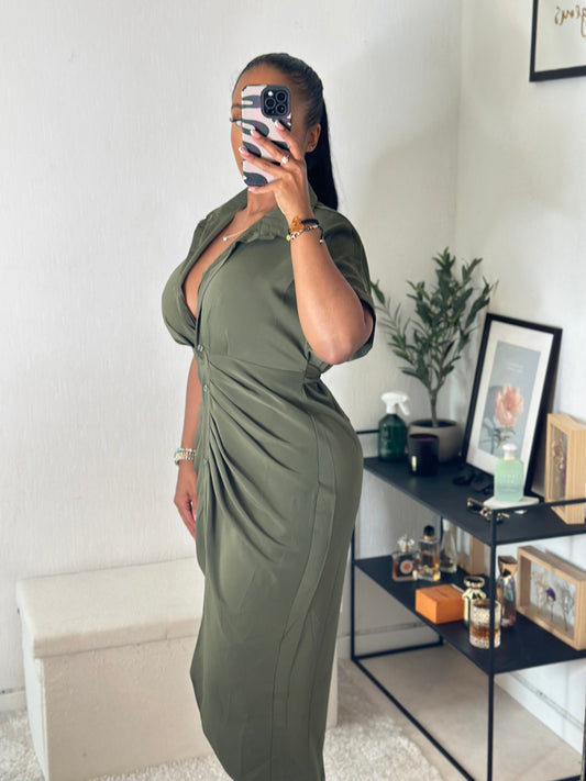 Robe drapé fluide kaky (noeud arrière)